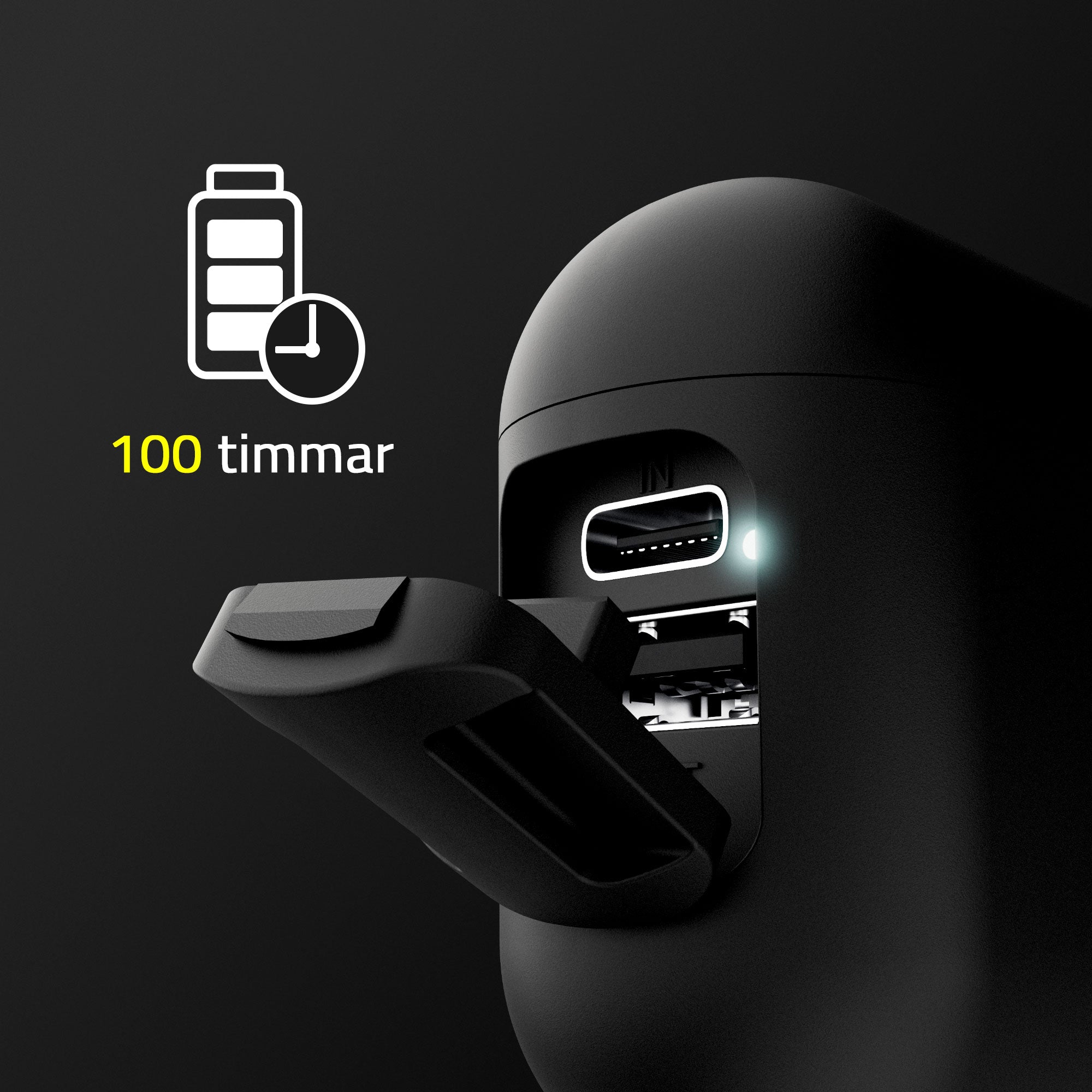 La boîte de charge, Powermag II©, est extrêmement puissante malgré son format très compact. Grâce à la batterie haute performance intégrée, vous pouvez recharger les écouteurs jusqu'à 16 fois, offrant une autonomie totale de plus de 120 heures. L'autonomie par charge est de plus de 7 heures.